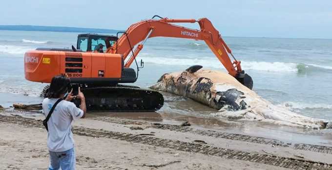 Xác cá voi dài 14 m dạt vào bãi biển Bali