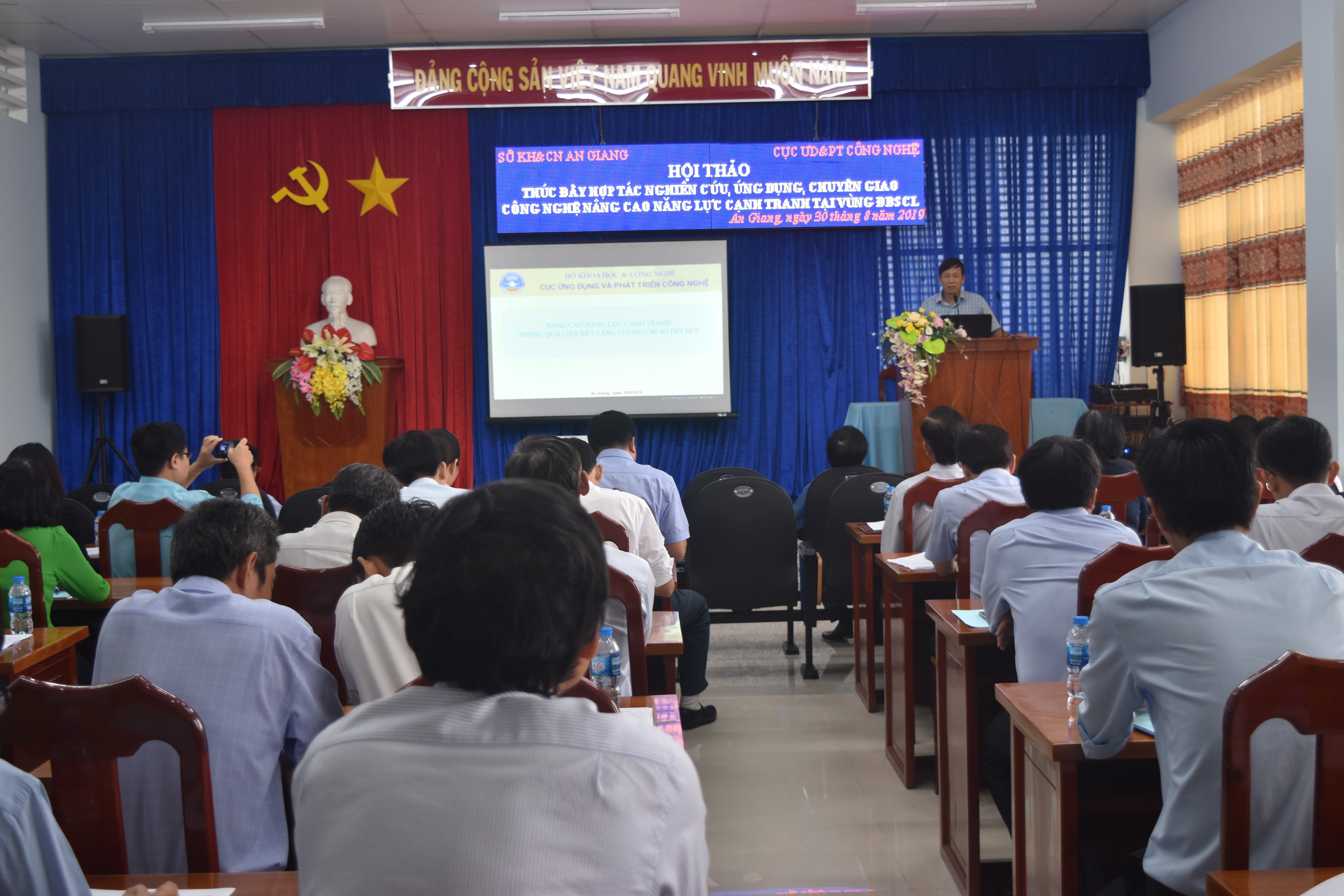 Ngày 30/8/2019, tại Thành phố Long Xuyên tỉnh An Giang, Cục Ứng dụng và Phát triển công nghệ đã phối hợp với Sở Khoa học và Công nghệ tỉnh An Giang tổ chức Hội thảo với chủ đề “Thúc đẩy hợp tác nghiên cứu, liên kết ứng dụng, chuyển giao công nghệ tại vùng Đồng bằng sông Cửu Long”.