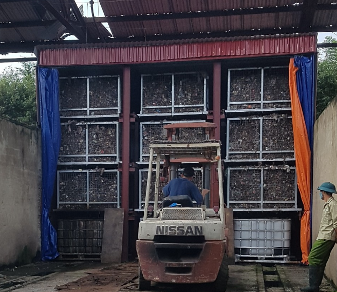 Các bể rác được xếp chồng thành tầng để tiết kiệm diện tích, rác xốp, dễ phân hủy. Ảnh: NVCC